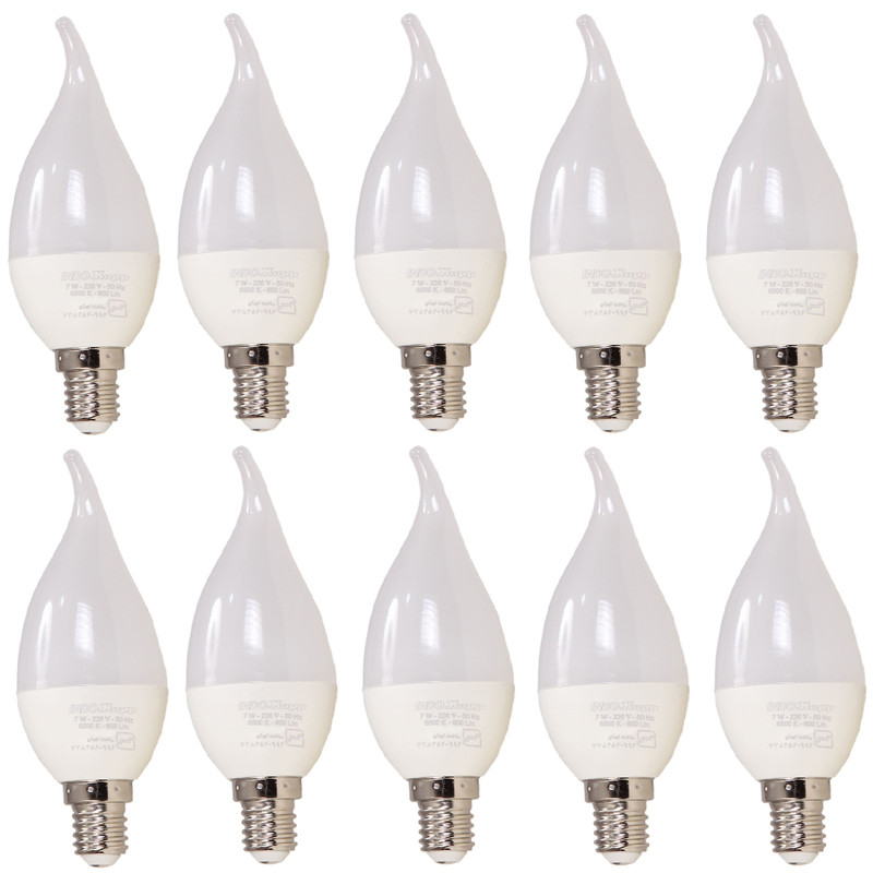 لامپ ال ای دی 7 وات ایندوکوپ مدل شمعی پایه E14 بسته 10 عددی