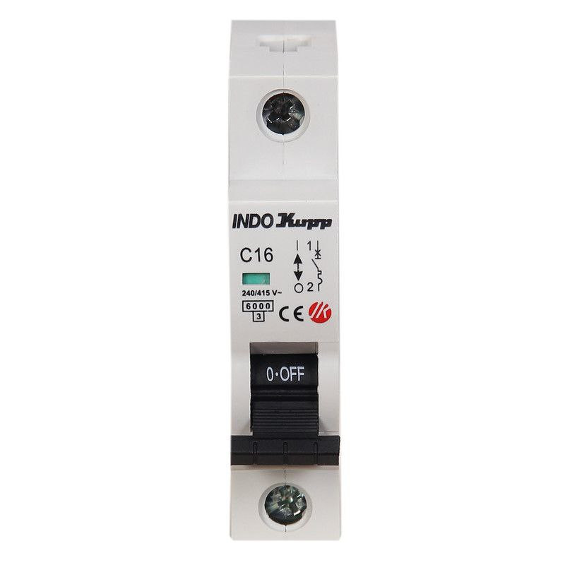 فیوز مینیاتوری تک فاز 16 آمپر ایندوکوپ کد C16 بسته 12 عددی