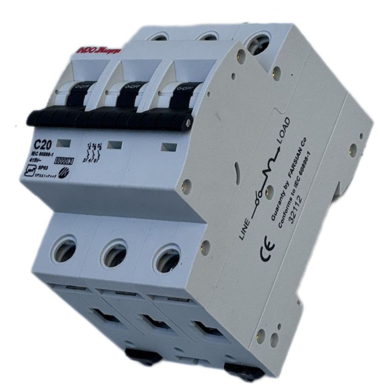 فیوز مینیاتوری سه فاز 20 آمپر ایندوکپ مدل C20 بسته 4 عددی